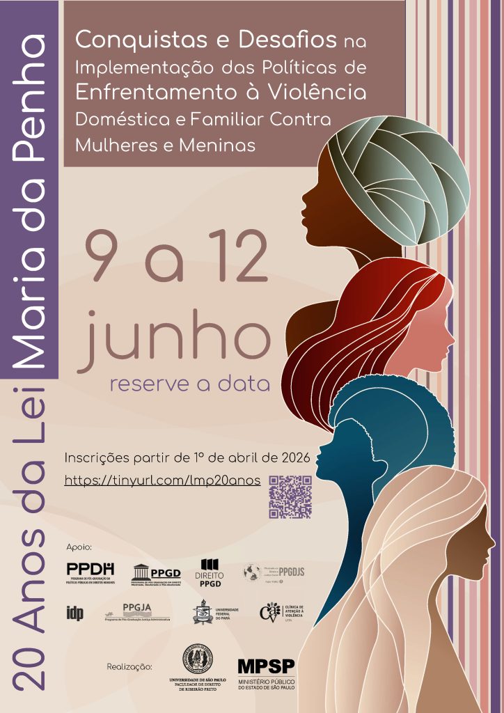 Entre os dias 9 e 12 de junho de 2026, a Faculdade de Direito de Ribeirão Preto da Universidade de São Paulo (USP) realizará, de forma presencial, o seminário “20 anos da Lei Maria da Penha: conquistas e desafios na implementação das políticas de enfrentamento à violência doméstica e familiar contra mulheres e meninas”.